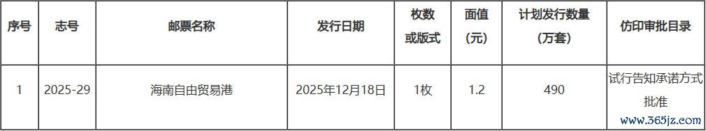 东说念主民网北京12月16日电 (记者杨虞波罗)经国度邮政局顽强,《海南解放生意港》特种邮票琢磨刊行数目、仿印审批目次情况如下: